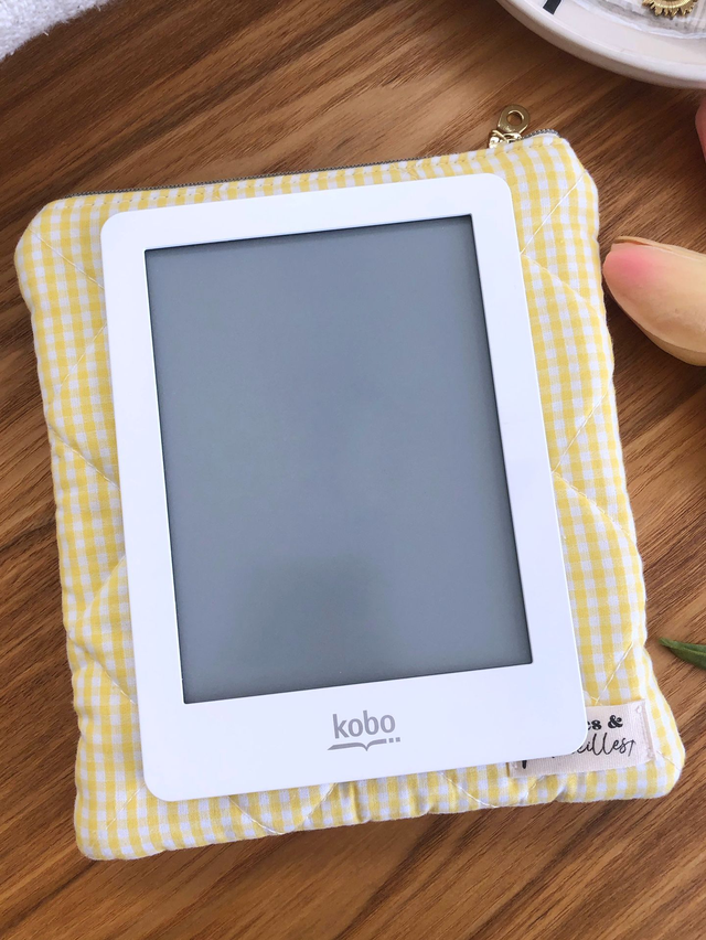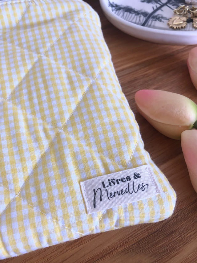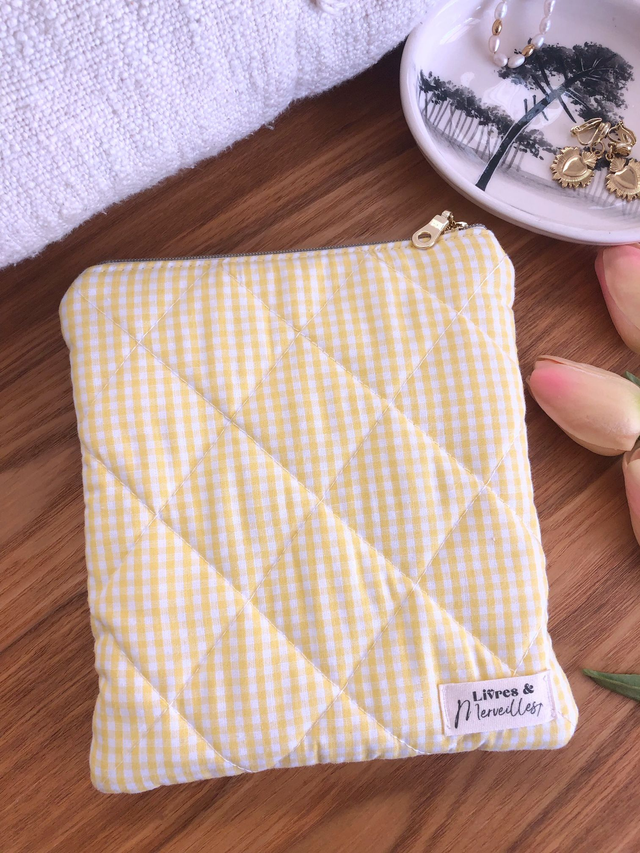 Protégez votre liseuse avec cette jolie pochette en tissu coton au motif vichy jaune pastel (butter yellow). Rembourrée et matelassée, cette housse est parfaite pour transporter et protéger votre liseuse.