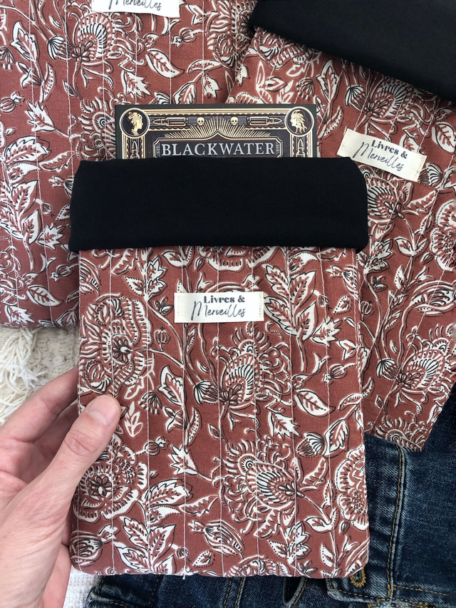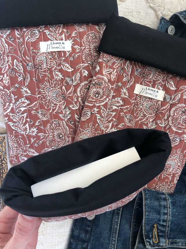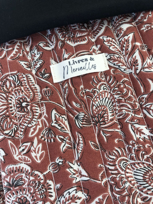 Protégez votre lecture grâce à cette pochette en coton matelassé au motif floral indien qui convient aussi bien aux femmes qu'aux hommes ! Confectionnée à la main dans un tissu 100% coton, elle est rembourrée d'une ouatine légère pour protéger vos livres des pliures et des chocs.