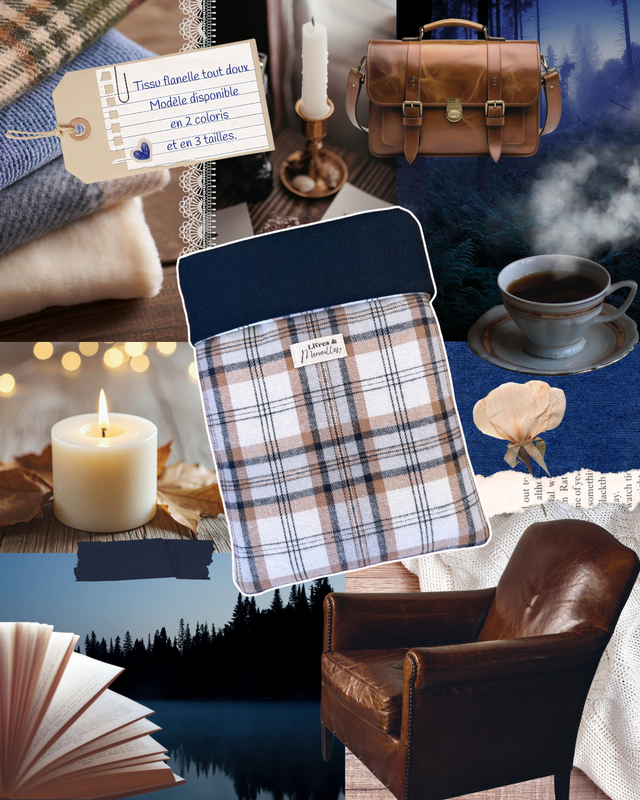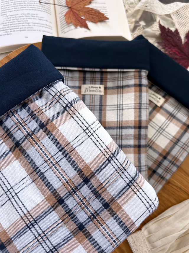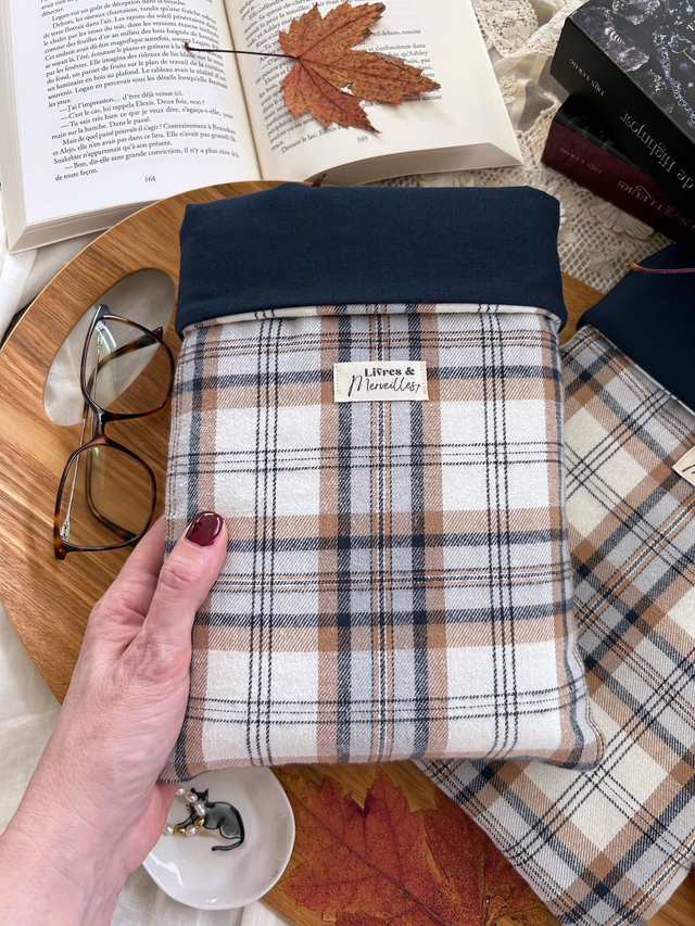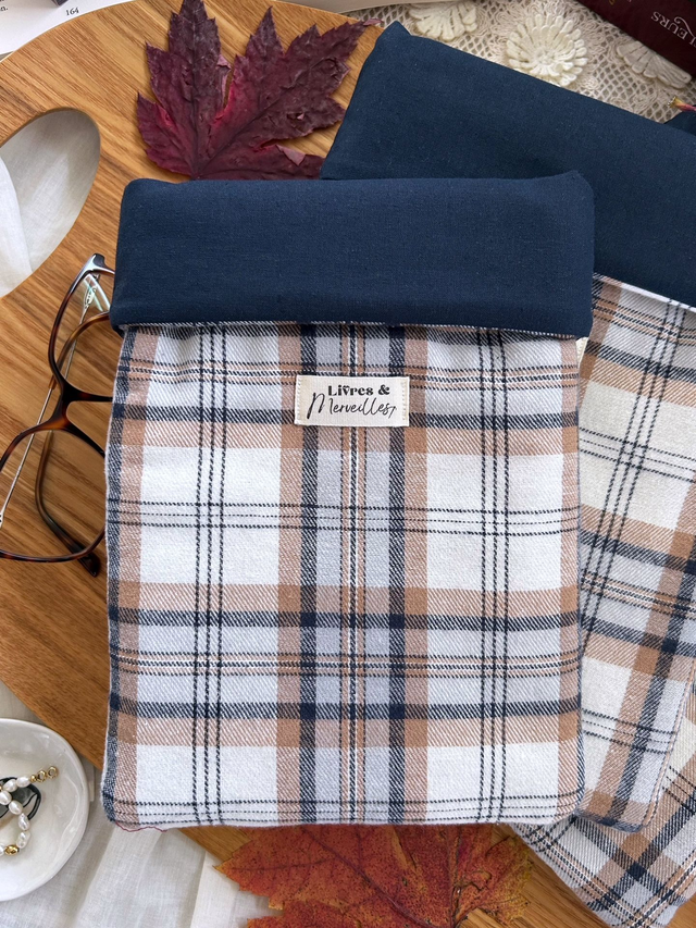 En flanelle bleue marine à motif tartan, cette housse de livre molletonnée associe chaleur, confort et style pour accompagner vos lectures cocooning tout l’hiver.