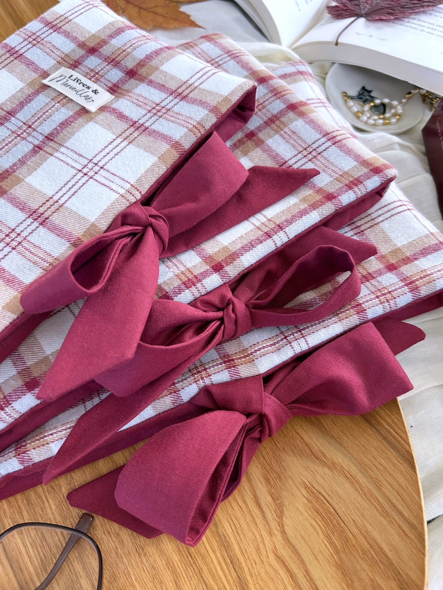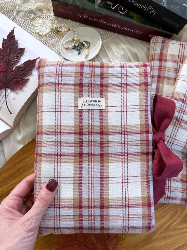 En flanelle rouge bordeaux à motif tartan, cette housse latérale à nouer associe chaleur, confort et style pour accompagner vos lectures cocooning tout l’hiver.